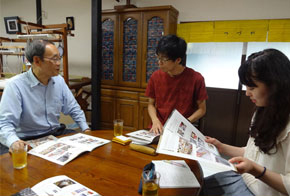 今回の取材先は『奏絲綴苑(そうしつづれえん)』の平野喜久夫さんです。平野さんは西陣織の中でも歴史が長い「西陣爪掻本綴織(にしじんつめがきほんつづれおり)」(通称:綴織)の伝統工芸士で、とても気さくな方でした。取材中もお話の端々に冗談を織り込んで話され、大変楽しく時間があっという間に過ぎ去ってしまいました。