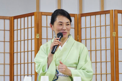 カミングから派生した「能舞台フェスタ in 今宮御旅所」を毎年5月に開催、また、京都上京KOTO-継の会を立ち上げ、上京区の暮らしの文化を伝えています。RADIO MIX KYOTOでのお話やブログの発信をしたり、伝統産業体験を子どもたちにしてもらうなど、次世代への文化継承に力を入れています。